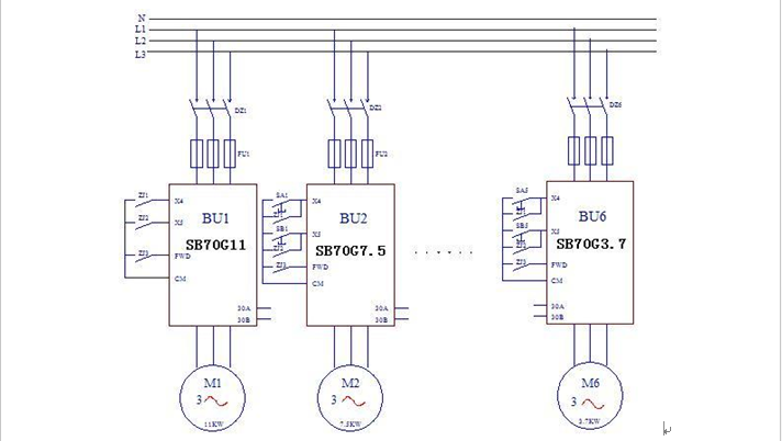 四川眉山仲輝集團(tuán)造紙廠,生產(chǎn)多種文化用紙,有多條造紙生產(chǎn)線,主要是1092小紙機(jī),也有1770紙機(jī)。這些紙機(jī)是早年的產(chǎn)品,傳動(dòng)部分有總軸傳動(dòng)和分部傳動(dòng),分部傳動(dòng)又有電磁調(diào)速傳動(dòng)和直流調(diào)速傳動(dòng)。由于使用年代較久,故障率較高,迫切需要改造。從2003年起,先后對(duì)這些紙機(jī)實(shí)施了變頻改造,全部改造都使用了希望森蘭的變頻器,主要使用SB70G系列變頻器。實(shí)踐證明,SB70G系列通用變頻器,開(kāi)環(huán)控制的精度可以適應(yīng)類(lèi)似1092、1770這類(lèi)低速紙機(jī)的要求,并且變頻器的穩(wěn)定性和可靠性較高,減少了因電磁調(diào)速和直流調(diào)速故障而產(chǎn)生的停機(jī)損失。
