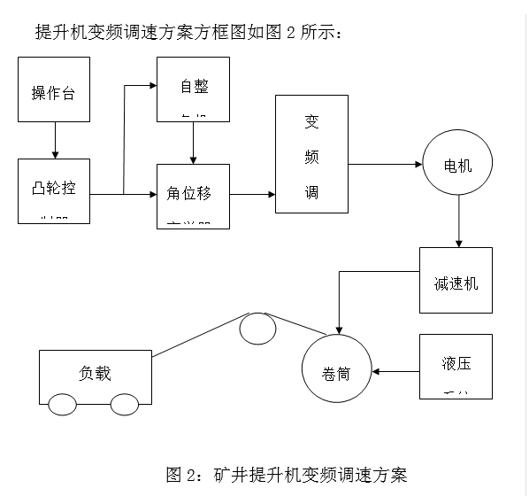 通過調(diào)研與論證,結(jié)合本公司礦井提升的現(xiàn)場實際情況,最終我公司技術(shù)中心做出決定,對提升機實施變頻調(diào)速改造,利用在機械行業(yè)中廣泛使用的自整角機來作為控制變頻器的速度給定。自整角機是通過角位移變送器輸出模擬量信號,操作工人搬動提升機操縱桿的角度,角位移變送器輸出相應(yīng)大小的模擬量信號,由此控制變頻器運行頻率,進而控制提升的運行速度。這種操作方式還可用變頻器多段速控制,提升機只能在這幾種速度下運行。而角位移變送器輸出的是連續(xù)的角位移變送器輸出模擬量信號,理論上提升機可在任意速度下運行,操作起來會方便一些,且與原操作習(xí)慣相似,操作工人容易掌握。