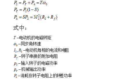 目前國內(nèi)各類礦山等提升機大都采用交流繞線式異步電動機轉(zhuǎn)子串電阻方式調(diào)速方案,使用交流接觸器改變轉(zhuǎn)子電阻來進行速度段的切換。對于繞線式電機,無論在起動?制動還是調(diào)速中,采用轉(zhuǎn)子串電阻方式均會帶來電能損耗。這種損耗隨著轉(zhuǎn)速的降低,轉(zhuǎn)差率S的增大而增大。繞線式電機的功率關(guān)系為: