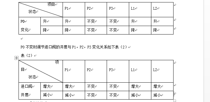 由表(1)和表(2)所反映的在P0改變時(shí)和進(jìn)口閥開(kāi)度改變時(shí),P1、P2、P3和L1、L2的變化可見(jiàn),進(jìn)氣P0的升高或降低,使P1、L1和L2發(fā)生相應(yīng)的改變。如果要使流量L1和L2不變,可調(diào)節(jié)進(jìn)口閥的開(kāi)度往P0增加的相反方向變化,即P0增大,進(jìn)口閥開(kāi)度減少,或P0降低,進(jìn)口閥開(kāi)度增大。