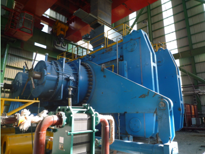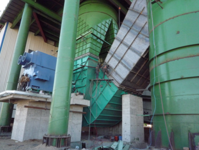 另一個是流量達(dá)到2000000 m3/h ,全壓達(dá)到5900 pa ,功率為5000KW的系統(tǒng)風(fēng)機(jī)。而我們森蘭高壓變頻器改造的就是這臺系統(tǒng)風(fēng)機(jī),變頻器型號為SBH-100-5600。經(jīng)過打散粉碎后的物料在擋料錐的導(dǎo)向作用下通過擋料錐外圍的環(huán)形通道進(jìn)入在風(fēng)輪向分布的風(fēng)力分選區(qū)內(nèi)。物料的分級中的粗顆粒物料由于其運(yùn)動慣性大,在通過風(fēng)力分選區(qū)的沉降過程中,運(yùn)動狀態(tài)改變較小而落入內(nèi)錐筒體被收集,由粗粉卸料口卸出返回,同配料系統(tǒng)的新鮮物料一起進(jìn)入輥磨機(jī)上方的稱重倉。細(xì)粉由于其運(yùn)動慣性小,在通過風(fēng)力分選區(qū)的沉降過程中,運(yùn)動狀態(tài)改變較大而產(chǎn)生較大的偏移,落人內(nèi)錐簡體與外錐筒體之間被收集。
