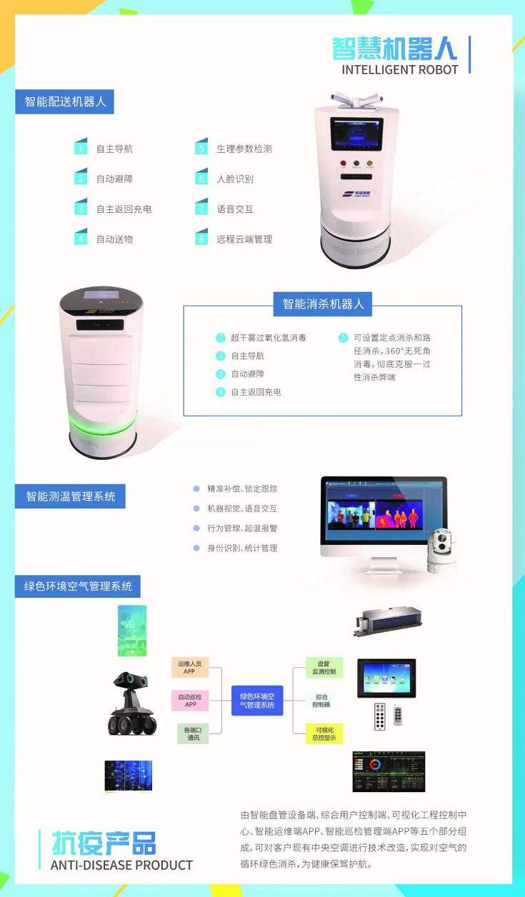 機(jī)器人產(chǎn)品是解決方案中最具智能化的高科技產(chǎn)品,憑借集團(tuán)長期的智能制造技術(shù)沉淀,推出智慧測溫機(jī)器人、智慧巡檢防疫機(jī)器人、智慧配送機(jī)器人等系列,還可實(shí)現(xiàn)與空調(diào)N95的AI智能聯(lián)動(dòng)。