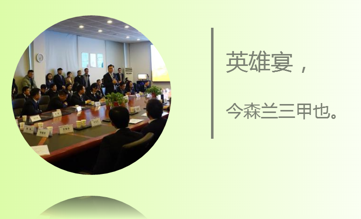 提起英雄宴, 是否會(huì)想起那場(chǎng)“華山論劍”。 “華山論劍”出自金庸《射雕英雄傳》,指武林高手在華山爭奪武功第一。與此相對(duì)的是森蘭銷售精英在中華大地競爭業(yè)績?nèi)?,也就是森蘭·英雄宴。 長歌一曲俠客行,劍鋒不染風(fēng)未停。 廿年老店,初心不忘,砥礪前行;仍修煉,顧視皆英雄也。若是肝膽照昆侖,又一年,可取三甲否? 吃江湖菜,行江湖事 提酒捧壺,做江湖人 尋找屬于自己的江湖路 其后一刻,將近酒,杯莫停; 君又一醉,道天明,執(zhí)劍忘天涯;三分酒氣,七分劍意;不鳴則已,來年定當(dāng)三甲。 具懷逸興壯思飛,欲上青天攬明月。 于江湖中行走,當(dāng)風(fēng)雨襲來的時(shí)候,愿做一個(gè)身披蓑衣、目光如炬的客! 半段賦,半盞茶,半身青衫,半筆江山……