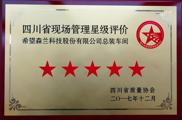 2018年1月4日,公司總裝車間被評為“四川省現(xiàn)場管理星級評價五星級現(xiàn)場”。同期榮獲五星級現(xiàn)場的公司還有通威太陽能(成都)有限公司、中國核動力研究設(shè)計院設(shè)計所、中國兵器裝備集團自動化研究所。