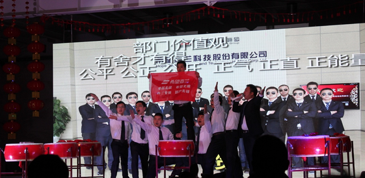 詩(shī)朗誦《沁園春·雪》配合書(shū)法“俱往矣,數(shù)風(fēng)流人物,還看今朝?!贝髿獍蹴?,既贊美了祖國(guó)山河的雄偉多嬌,又抒發(fā)了希望森蘭以“變”贏未來(lái)的抱負(fù)。邊跳邊唱的《七月火把節(jié)》歌調(diào)熱情豐富,滲透著一種“狂歡化”的團(tuán)結(jié)精神,傳達(dá)著森蘭人積極向上的思想觀念和素樸的生活態(tài)度??偨?jīng)理及高管合唱《壯志在我胸》,管那山高水也深,也不能阻擋我奔前程,為破局2017積蓄能量。