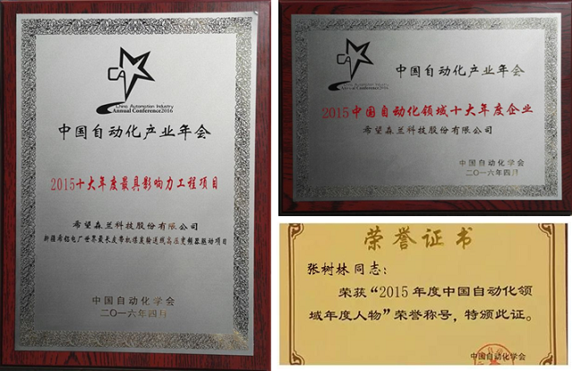 在2015中國(guó)自動(dòng)化領(lǐng)域年度獎(jiǎng)項(xiàng)評(píng)選現(xiàn)場(chǎng),希望森蘭科技股份有限公司獲得“2015中國(guó)自動(dòng)化領(lǐng)域十大年度企業(yè)”,公司副總經(jīng)理張樹(shù)林先生榮獲“2015中國(guó)自動(dòng)化領(lǐng)域年度人物”,此外,希望森蘭的“新疆希鋁電廠世界最長(zhǎng)皮帶機(jī)煤炭輸送線高壓變頻器驅(qū)動(dòng)項(xiàng)目”獲得“2015中國(guó)自動(dòng)化領(lǐng)域十大年度最具影響力工程項(xiàng)目” 三項(xiàng)重要大獎(jiǎng)。